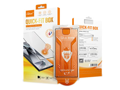 Ochranná fólia Mietubl Quick Fit Box má vstavanú ochrannú fóliu Quick Fit Box s presným rámom, ktorý automaticky zarovná ochrannú fóliu na obrazovku pre dokonalé umiestnenie bez profesionálneho náradia.