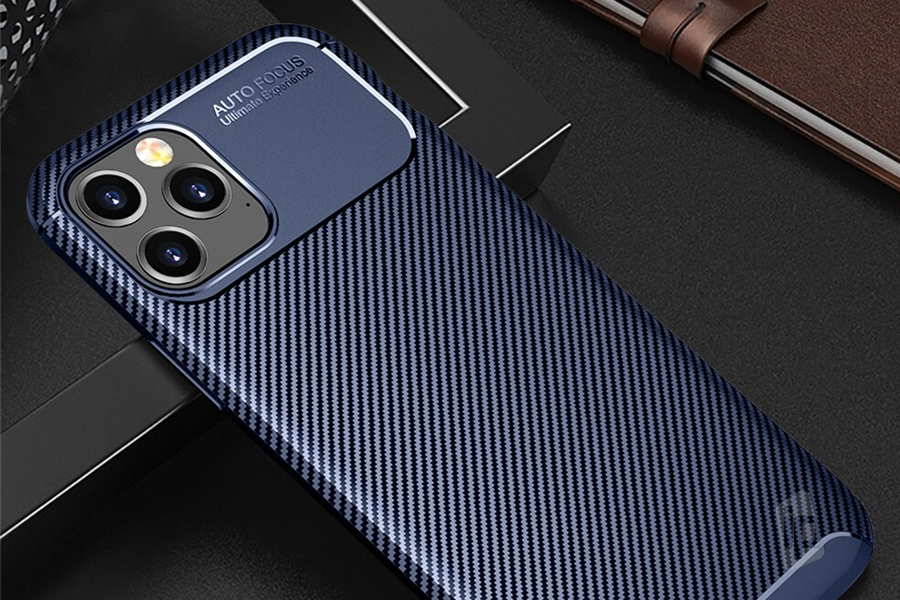 Moderný ochranný obal (kryt) pre iPhone 12 Pro Max s karbónovým vzorom.